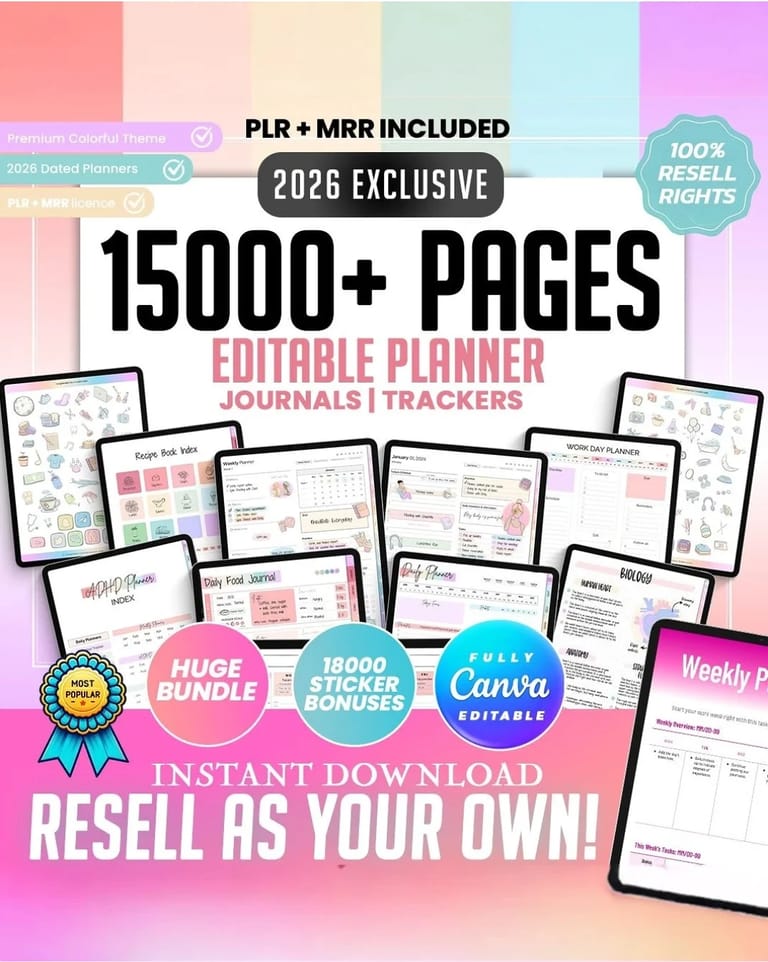 10. 15,000 Pages Editable Planners, Trackers & Journals Templates (PLR/MRR)